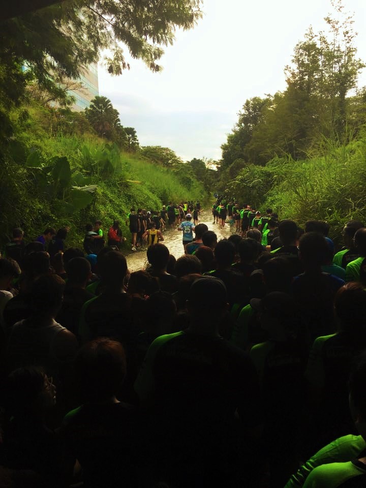 Just as we were able to get ourselves going, within a kilometer we passed beneath one of the overhead bridges to find ourselves stuck behind numerous runners just standing still, unsure of what was happening ahead. We didn’t account for the mini-pond that was as wide as the running path and possibly as long as 15m (I could be dreaming this but I don’t think so). Ah what to do? We wore old runners but we weren’t particularly prepared to get wet, muddy and squishy shoes so early in the race and the look of horror on Trinity’s face was the deciding factor to attempt to circle the pond on the minuscule amount of surface left to tread. Just like everyone else except for the 10km gung ho runners who’ve been dealing with this surface for 6km already and just no longer cared about how filthy they were going to get. They barreled their way through the pond splashing everyone in sight.